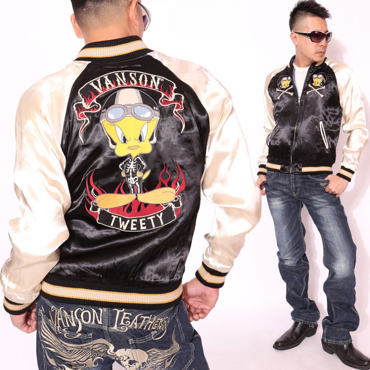VANSONボーンを纏ったバイカーなトゥイーティーのフェイス面と、チョッパー&ロードランナーのリバース面からなる、両A面リバーシブル!その日の気分で着分けてみたくなる、カラーリングの使い分けも絶妙♪
