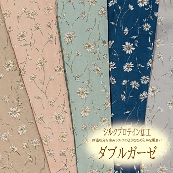 配送方法対応サイズ メール便個数1〜15 宅配便1個〜シルクプロテイン加工のデイジー柄のダブルガーゼ♪