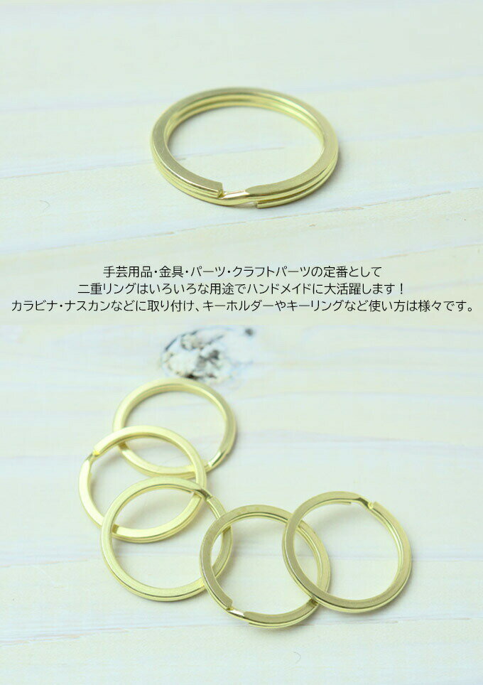 メール便 二重リング 真鍮 30mm 平型 リング フラットリング ゴールド 外径30mm キーホルダー ゴールドリング パーツ 金具 アクセサリー おしゃれ キーリング 鍵 ダブルリング 部品 キーホルダーパーツ アクセサリーパーツ キーケース